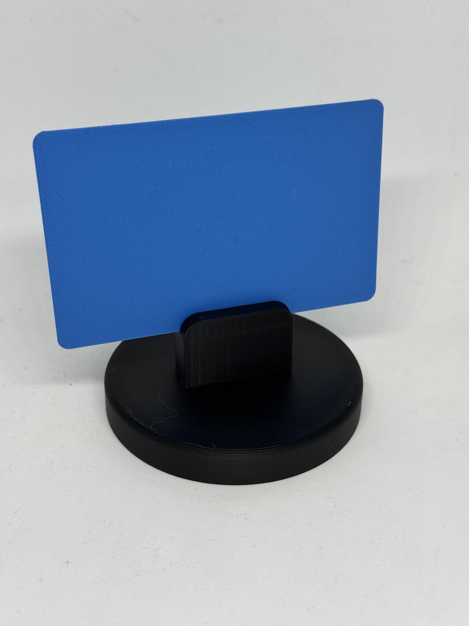 Handgefertigte Visitenkarte aus biologisch abbaubarem PLA, 3D-gedruckt nach Kundenauftrag in unserer Manufaktur. Mattes PLA vergibt dem Produkt eine spezielle edle Note.